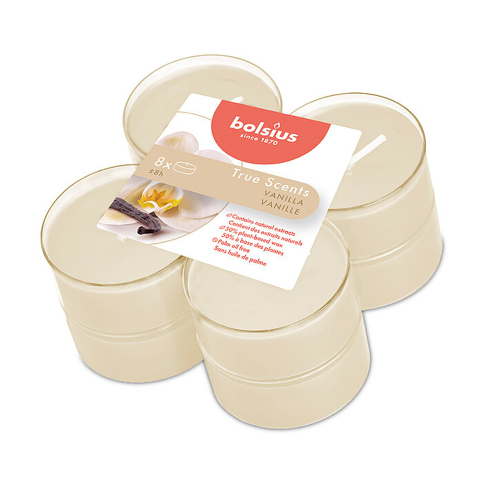 True Scents Maxi-Teelichter 8h im Clear CupVanille (8er Pack)