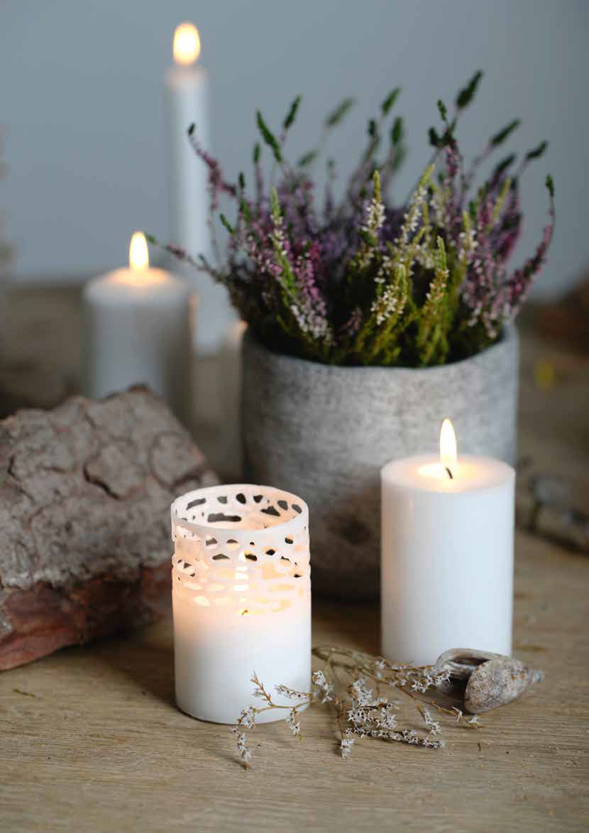 Gegossene Stearin-Stumpen mit natürlichem Wachs und frei von Palmöl. Bei den gegossenen Stumpen kann beim Abbrand ein dekorativer Netzeffekt entstehen. RAL geprüfte Markenqualität von Müller-Kerzen.